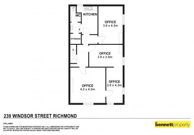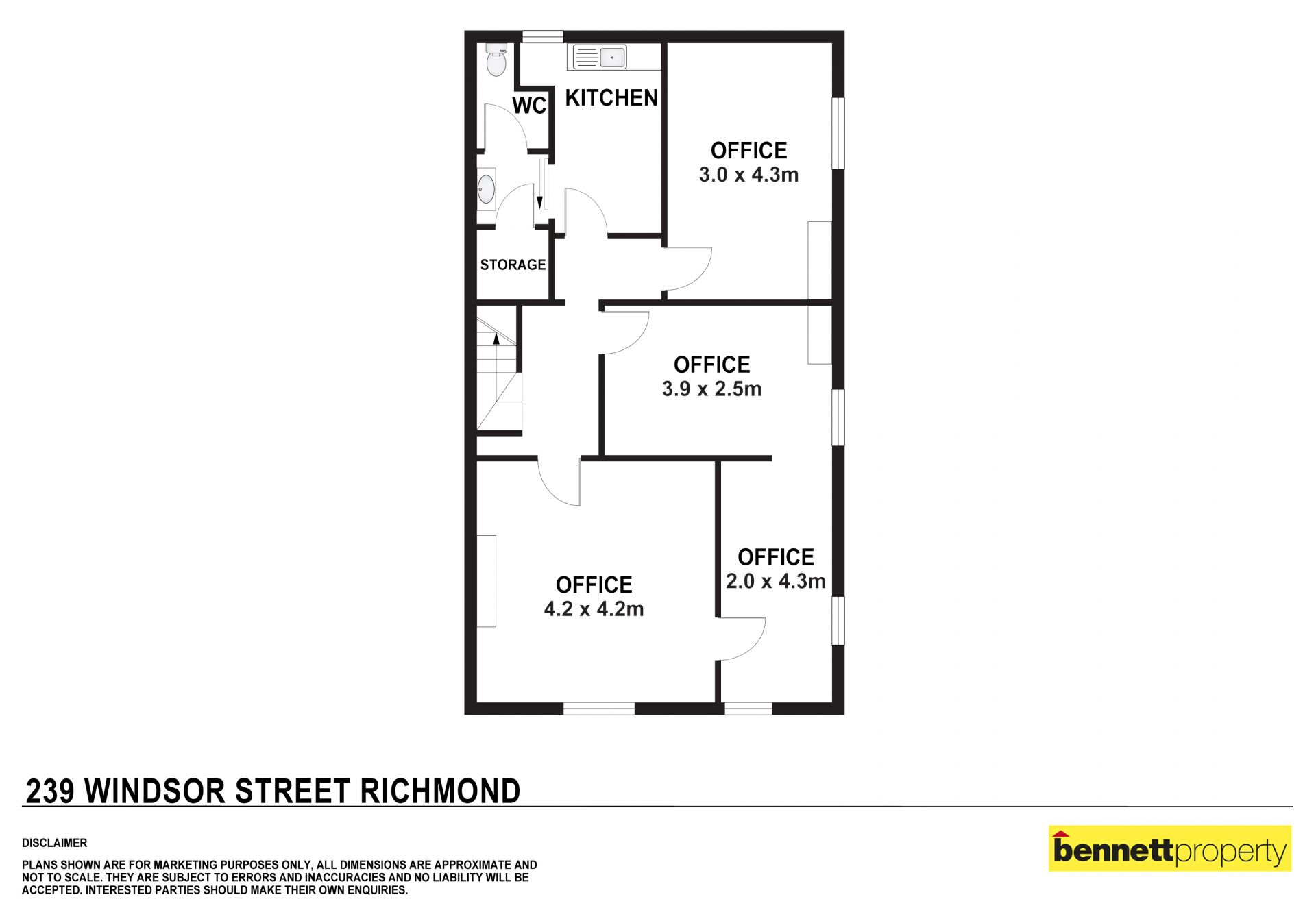 Bennett Property Richmond presents this versatile upstairs office space, situated in the main street of Richmond.