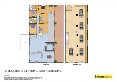 A huge under house workshop has internal access, 3 phase power, dual roller doors, toilet and shower is perfect for the tradesman or simply a great place to lock away all the toys.
