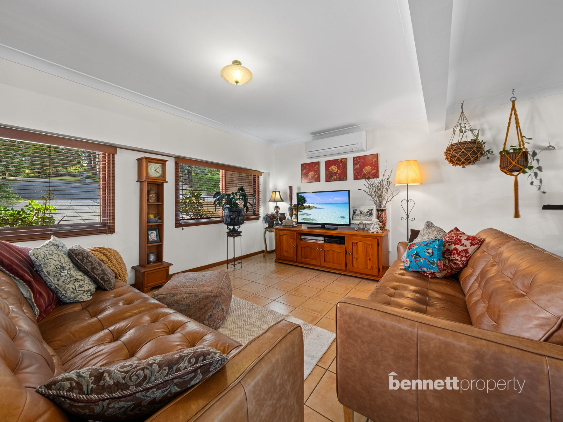- Ducted air conditioning upstairs. Split system air conditioner downstairs.