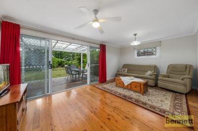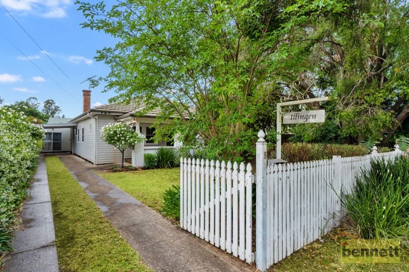 Formal lounge with fireplace, modern kitchen with stone bench tops and dishwasher, main bedroom with ensuite and walk in robe, updated main bathroom with floor to ceiling tiles and heated towel rails. Family room flows out to covered entertaining deck and level lawns with established gardens including roses, fruit trees and an aviary or chicken coop.