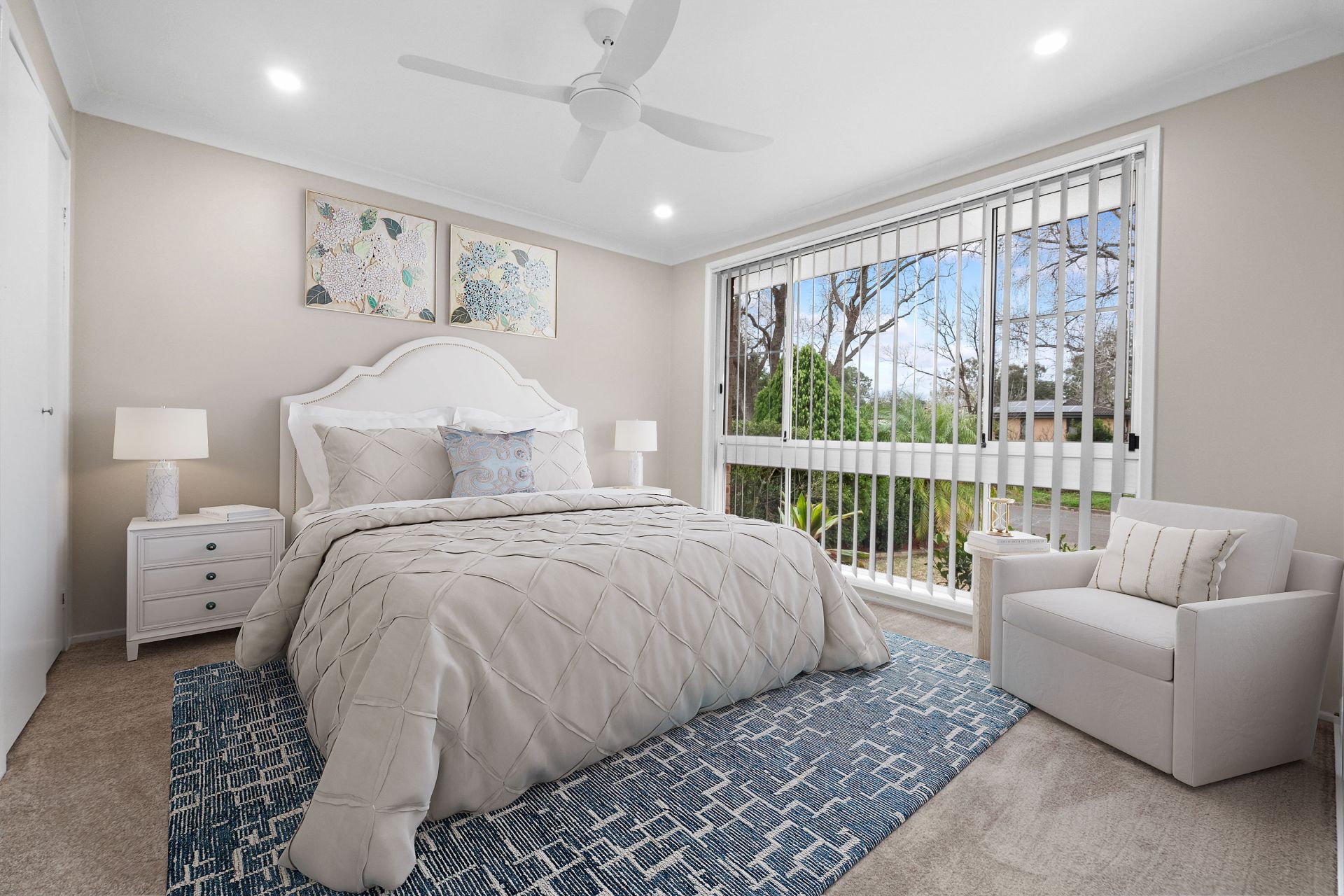 - Three generous-size bedrooms, all with new ceiling fans, and a master with built-in