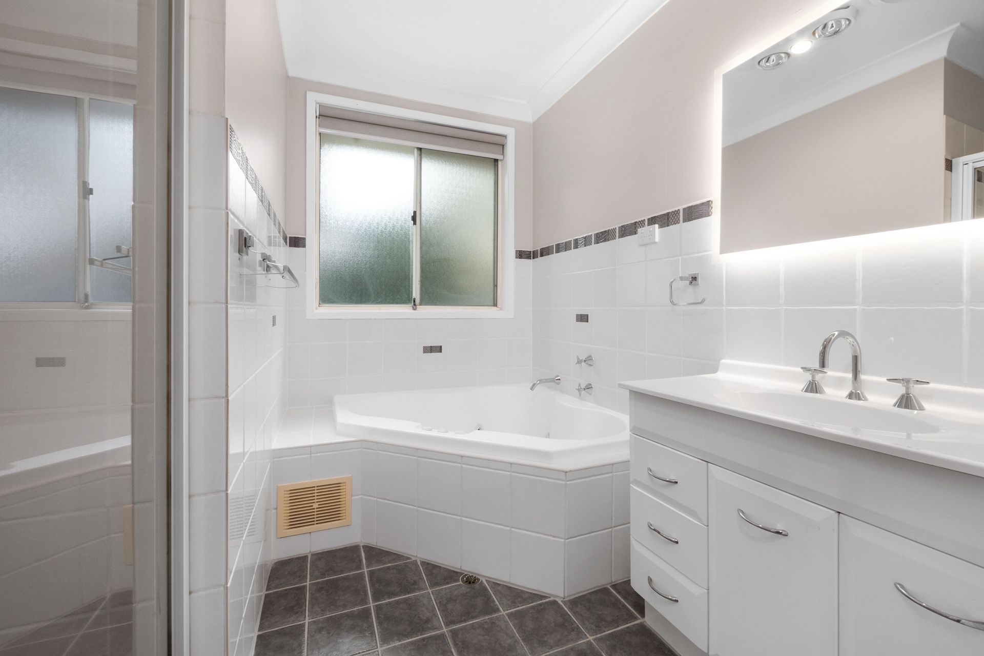 The kitchen has been recently updated with a dishwasher, quality appliances, and plenty of storage options. The main bathroom has modern features, including a corner spa bath and shower and a separate toilet.