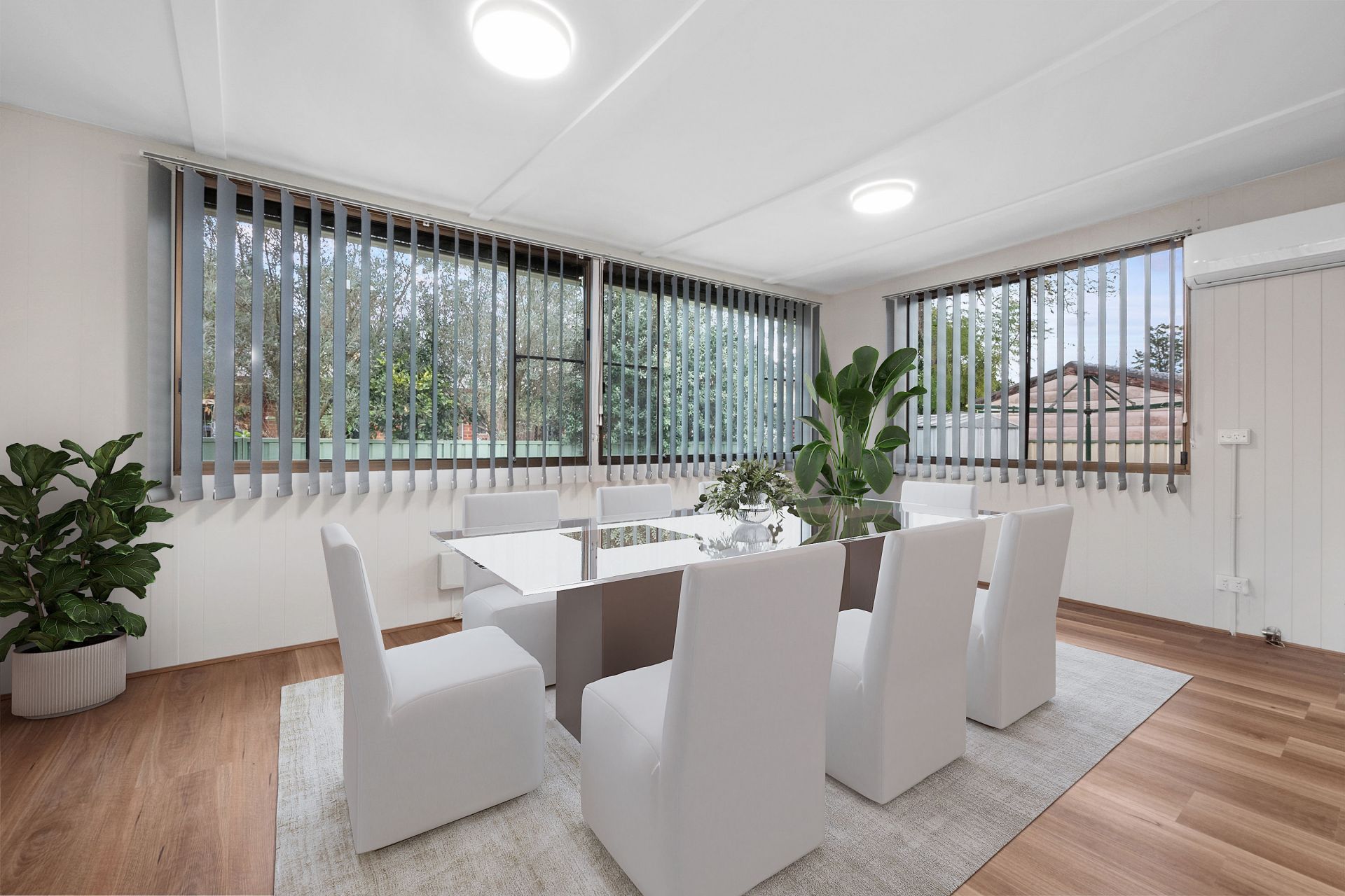 - Large rear sunroom with split-system air conditioner for extra living space