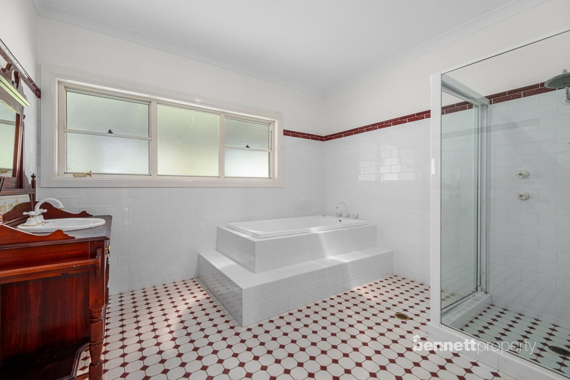 A key highlight of the home are the bedroom sizes and space. All three bedrooms are oversized with deep built-in wardrobes and lovely yard outlooks. Serviced by main confederation style bathroom with shower and bathtub. The master bedroom is a retreat all too its own and is situated in a private wing of the house, away from the other bedrooms. Offering a huge room with his/hers walk-in closet, ensuite with spa bath, and a private office space which is also perfect for baby nursery, and with access to veranda.