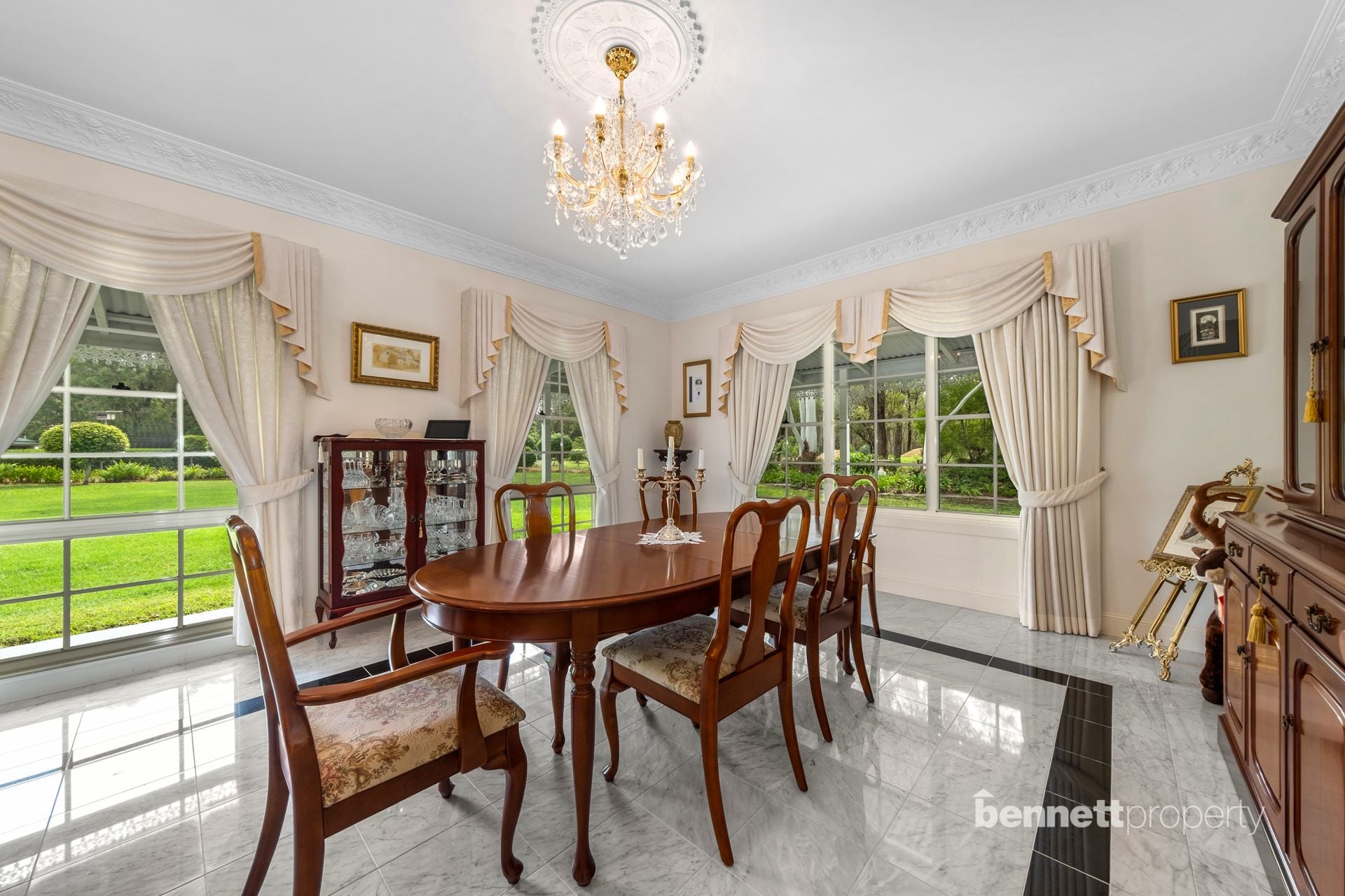 Bennett Property have the pleasure of presenting to market this expansive homestead situated on a substantial 54 + acres! Privately placed in a stunning rural setting with verdant pastureland and established gardens surrounding the home. Immerse yourself in luxury, space, and tranquility with this prestige property on quality usable acres. The custom-built home has been crafted to create elegance with rich natural timbers, Corsica blocks and Carrara marble tiles. This immaculate family home is warm, inviting and full of personality and has the added the bonus of extra accommodation with separate loft studio.